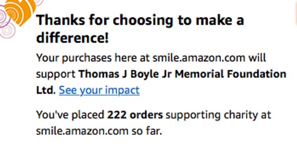 Tha Amazon Smile Foundation will donate 0.5% of the purchase price from your eligible Amazon Smile purchases to the Thomas J. Boyle Memorial Foundation. There is no additional charge to you. You use the same Amazon account you are using now. Once you have set up the charity of your choice on Amazon Smile, you shop as usual. Any time you wish you can look and see the impact of your donations.